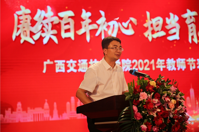 自治區交通運(yùn)輸廳黨組成員歐陽斌代表自治區交通運輸廳黨組作講話,向辛勤工作在教育戰線上的全體教職工表示節日的祝福和親切的問候。對獲得(dé)表彰的優秀教師、優秀教育工作者、防汛先進個人表示熱烈的祝賀!並提出殷切希望:一是希望學院(yuàn)繼續保持俯首甘為孺子牛的幹勁,辦好(hǎo)技工教(jiāo)育,把握好當前的發展機遇,推(tuī)動(dòng)學校的辦學更上一個(gè)層(céng)次,在91.com高速發展的征途上添一把助力;二是希(xī)望學院抓住機遇,與時俱進,積極對(duì)接廣西現代綜合交通運(yùn)輸體係建設的“鐵、公、水(shuǐ)、空”全領域人(rén)才需求(qiú),大力發展具有行業特色的(de)職業教育;三是希望(wàng)學院(yuàn)賡續百年初心,擔當育人使命,以(yǐ)立德樹人為宗旨(zhǐ),弘揚紅色優良傳統,勇於創新,推進教育教學改(gǎi)革,進一步煥發生機和活(huó)力,為建(jiàn)設91.com強區作出積極貢獻(xiàn)。