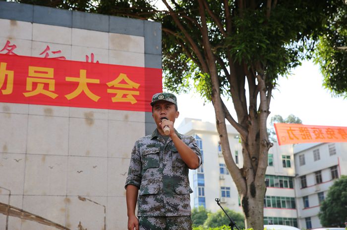 動員(yuán)大(dà)會上,學院副院長王欽、樊海林,分別於邕(yōng)武校區(qū)、長堽校區作講話。講話指出,軍訓(xùn)是全麵貫徹黨的教(jiāo)育方針,加強學生思想品德教育的重要措施,做好學生軍訓工作,有助於規範學生言行,磨練意誌,增強組織紀律,培養艱苦奮鬥(dòu)的作風,為同學們(men)學習專業(yè)技能、錘煉工匠本領打下堅實的基礎。副院長(zhǎng)王欽、樊海林也提出了幾點希望:一是希望教官們能嚴格要求,大膽管理,把優良的作風帶給我們的學(xué)生,留在我們學院;二是希望各位新生(shēng)班主任(rèn)要及(jí)時做好學生的思想教育工作,學生工作科、後勤服務科等相關部門要做(zuò)好後勤(qín)服務保障工(gōng)作,關心(xīn)學生,配合教官(guān)完成(chéng)軍訓;三是希望同學們要嚴格遵守紀律,堅決服從教官的安排,發(fā)揚吃苦耐勞的精神,不怕困難,以高標準、嚴要求來(lái)約束自己。