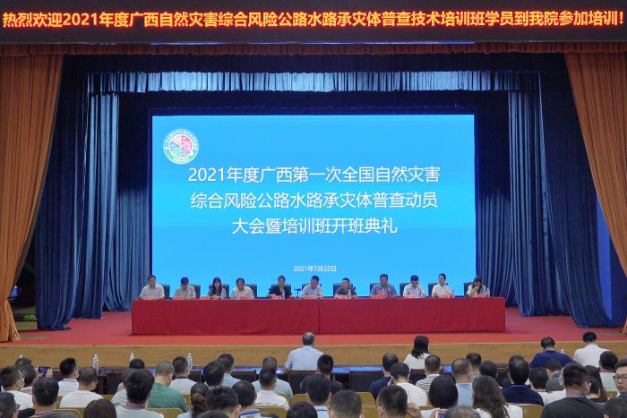 為加快推進(jìn)全(quán)國(guó)自然災害(hài)綜合風險(xiǎn)普查工作,提高交通係統各部門災害風(fēng)險普查工(gōng)作人員的專業知識和業務能力,7月22日上午,2021年度(dù)廣西第一次(cì)全國自然災害綜合風險公路水路承災體培訓班開班典禮在我院大禮堂(táng)隆重開班。