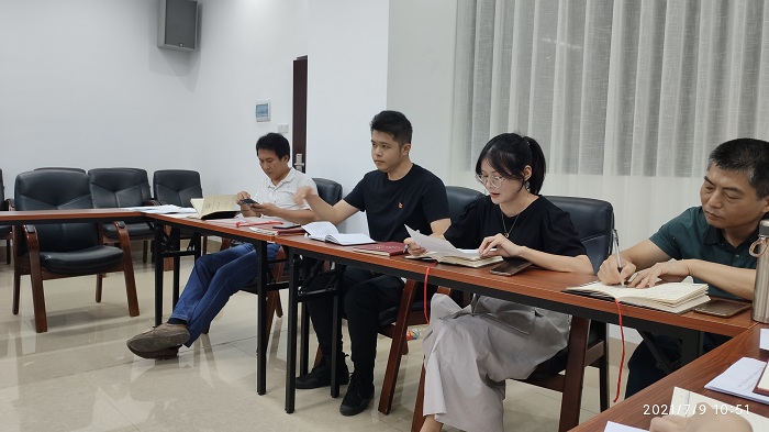 2021年7月9日,學院第五黨支部在邕武校區綜合樓二樓會議室召開黨史學習教育專題組織生活會。會議由支部書記周茂傑同誌主持,支部黨員全體(tǐ)參加會議,學院黨(dǎng)委(wěi)副書記、紀委書(shū)記韋昌甲同誌以(yǐ)普通黨員身份參加本次會議。