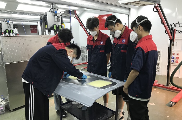 圖3 汽車塗裝技術項目訓練現場