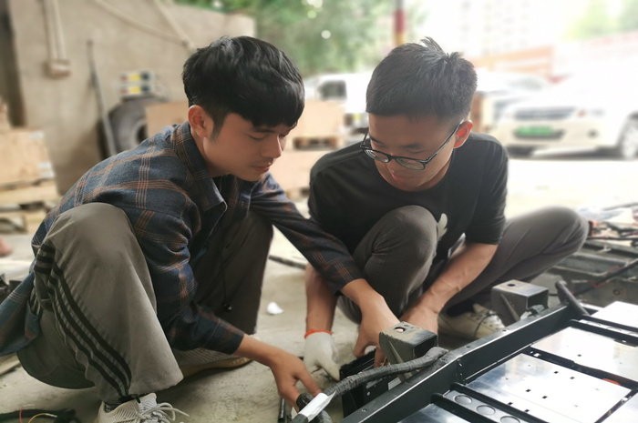 汽(qì)車工程係副主任李霞與企業新能(néng)源汽車技術部(bù)經理交流