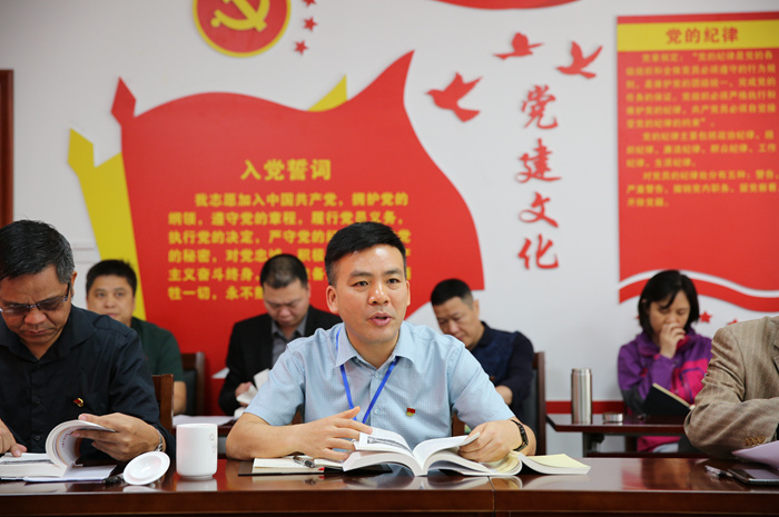 會上舉行了讀書(shū)班,由學院黨委副書記、紀委書記韋昌(chāng)甲同誌和第二(èr)黨支部書記、後勤服務科科長毛華(huá)劍(jiàn)同誌帶領全體與會黨員幹部分別學習了(le)《中國共產黨簡史》第五章第五(wǔ)節“社會主(zhǔ)義(yì)改造的基本完成和社會主義(yì)製度的建立”和第六章第一(yī)節“黨的八大和中(zhōng)國社會主義建(jiàn)設的(de)良好開端”內容。學院副(fù)院長關菲明同(tóng)誌和6名(míng)中層黨員幹部(bù)圍繞專題學習內容(róng)分別作學習心得交流發言。