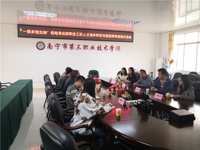 座談會上(shàng)南寧市第三職業技術(shù)學校蒙槐春副校長以及該校教務科、機電係的老師與(yǔ)我院(yuàn)的老師進行了深入交流。會上樊海林副院長表達了(le)對南寧市第三職業學校的感謝之意並簡要地(dì)介紹了我(wǒ)院目前專業群(qún)建(jiàn)設的情況。