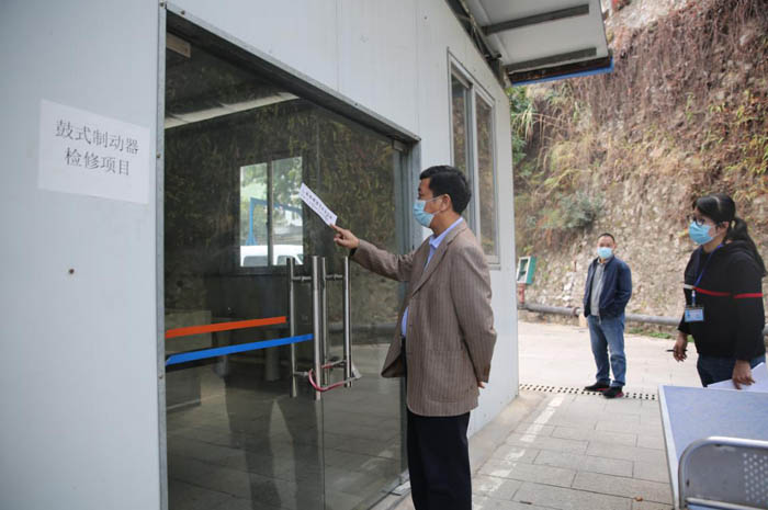圖(二):黨委書記鍾修仁同誌檢查長堽校區鼓式製動器車間封(fēng)條情況
