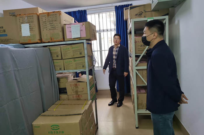 圖(三):王欽副院長檢查組在查看疫情防控(kòng)物資儲備情況