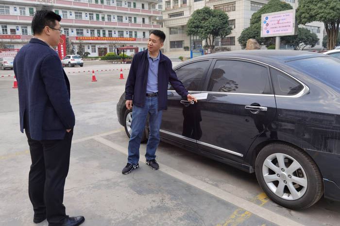 圖(四):王欽(qīn)副院長檢查組在(zài)檢查學院(yuàn)公務車封條情況