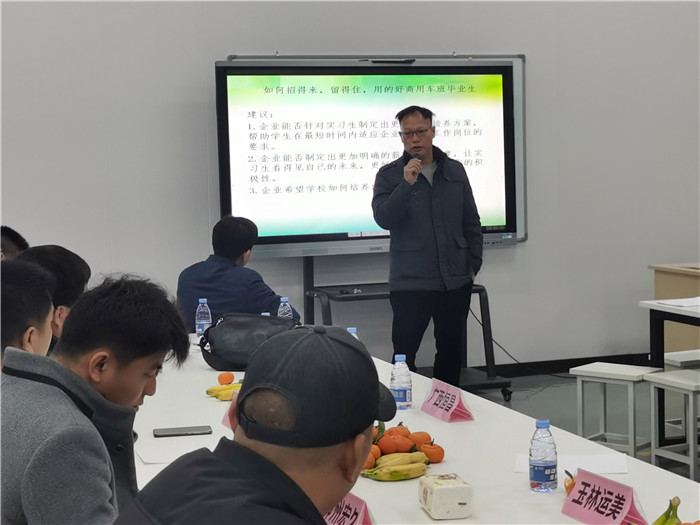 揭牌儀式結束後,學院與企業召開了校企(qǐ)合作交流會。會(huì)上,商用(yòng)車教(jiāo)研室主任張東山向到場的企業領導介紹了商用車基地建設情況、班級創辦情況、師(shī)資力量等(děng),提出:人才的培養需要學校、企業及(jí)各屆人士的共同努力,共同承擔社(shè)會責任,希(xī)望企業能為畢(bì)業生積極提供良(liáng)好就業環境,同時希望學院與企(qǐ)業加強合作交流,根據企業用人需求製定人才培養計劃,實現人才招得來(lái),用得上,留得住的良性(xìng)循環。企業領導代表就校企合作發言(yán):一是(shì)對學院商用車基地的(de)建設和人才培養輸送(sòng)表示感謝;二是介紹學院畢業生到崗就業的具體情況;三是表示將摒棄舊(jiù)思想,改進企業製度、工作環境、人文環境等,爭取暢通人才選用渠道,實(shí)現人才招得來,用得上,留(liú)得住的(de)良性循(xún)環。