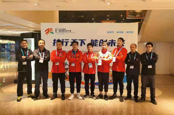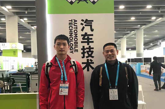 代表學院參加全國第一屆(jiè)職業技能大(dà)賽的黃世森選手和教練代表覃強老師