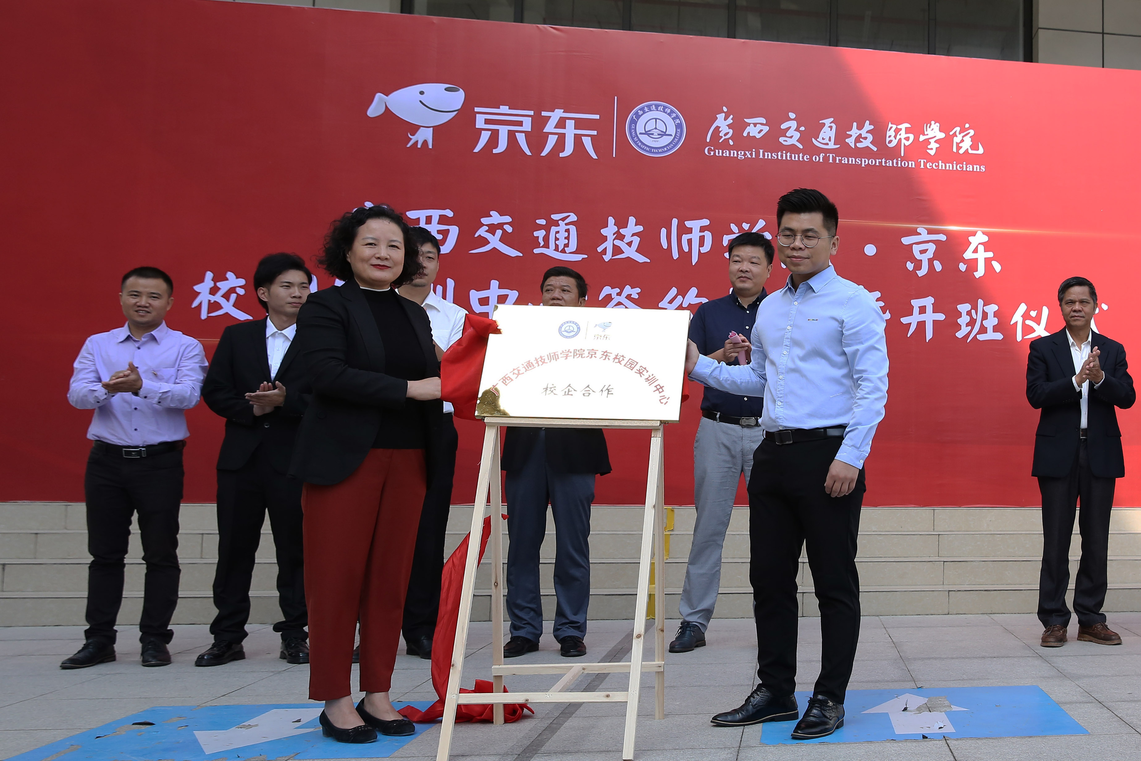 隨後,京東全國客戶服務中(zhōng)心校園運營部副總(zǒng)經理(lǐ)畢強和91.com技師學院(yuàn)副院長劉芳共(gòng)同為“廣(guǎng)西交通技師學院京東校園實訓中心”揭牌(pái)。