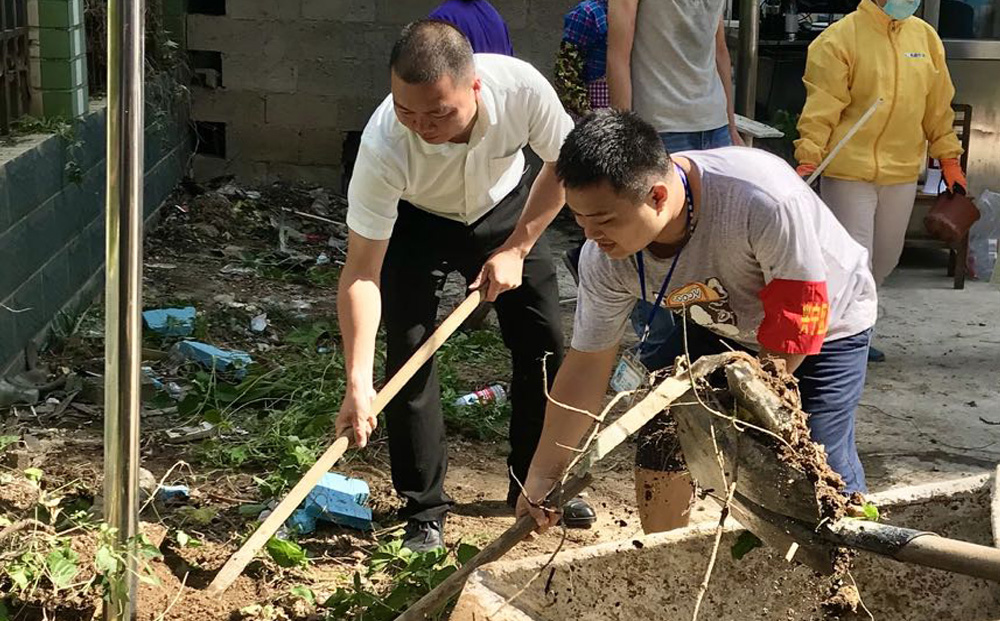 為(wéi)貫徹落實上級部門關於南寧市創建全國文明城市的指示精(jīng)神和要求,結合(hé)學院黨委“不(bú)忘初心,牢記使命”主題教育實踐活動,加強校園環境衛生管理,營(yíng)造(zào)整潔優美的(de)校園環境(jìng),發揮黨員(yuán)幹部的先鋒模範作用,7月16日,學院第一黨支部全體黨員幹部前往職工(gōng)生活(huó)區開展了(le)以“環境衛生整(zhěng)治”為主(zhǔ)題的清潔誌願服務暨主題黨日活動。