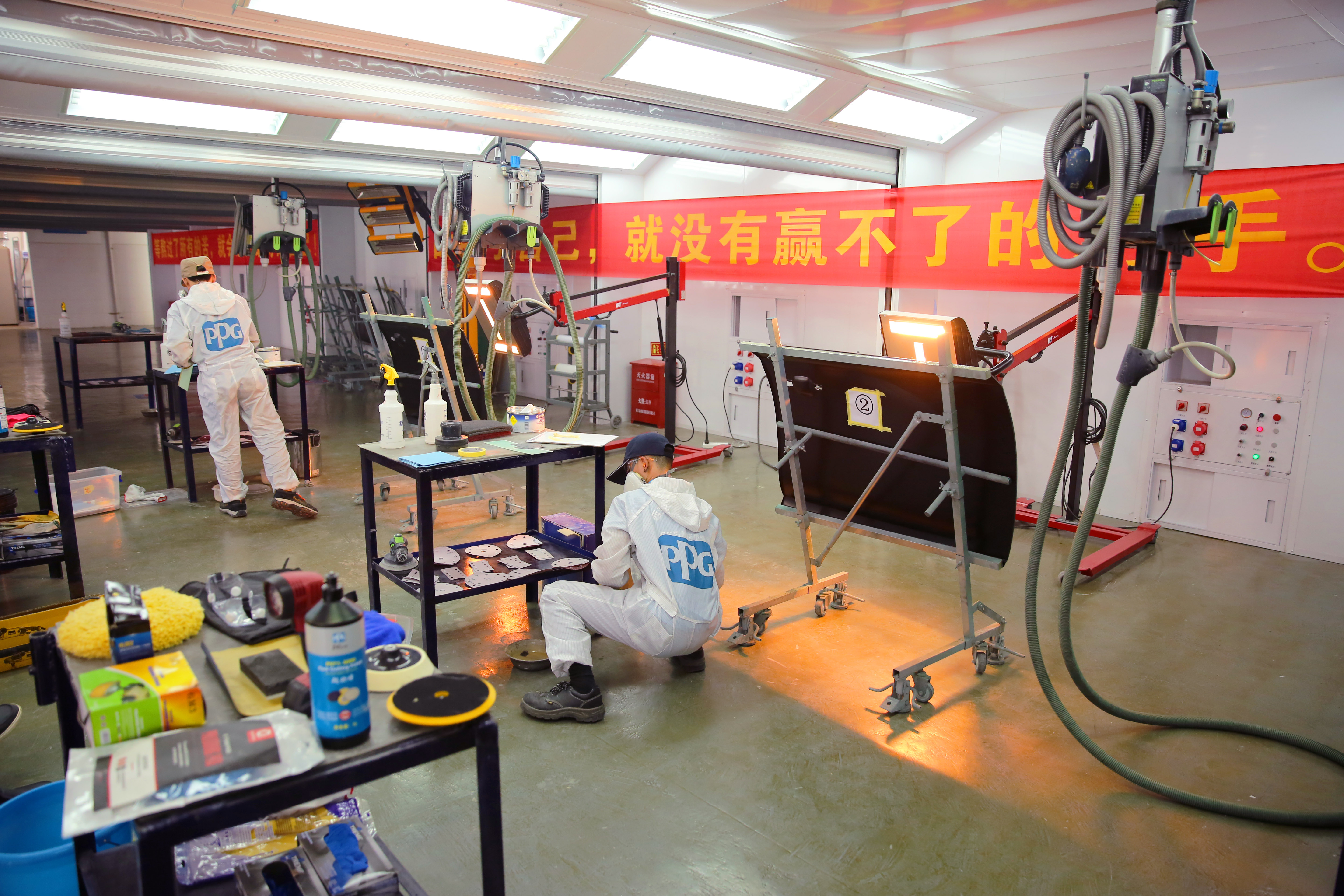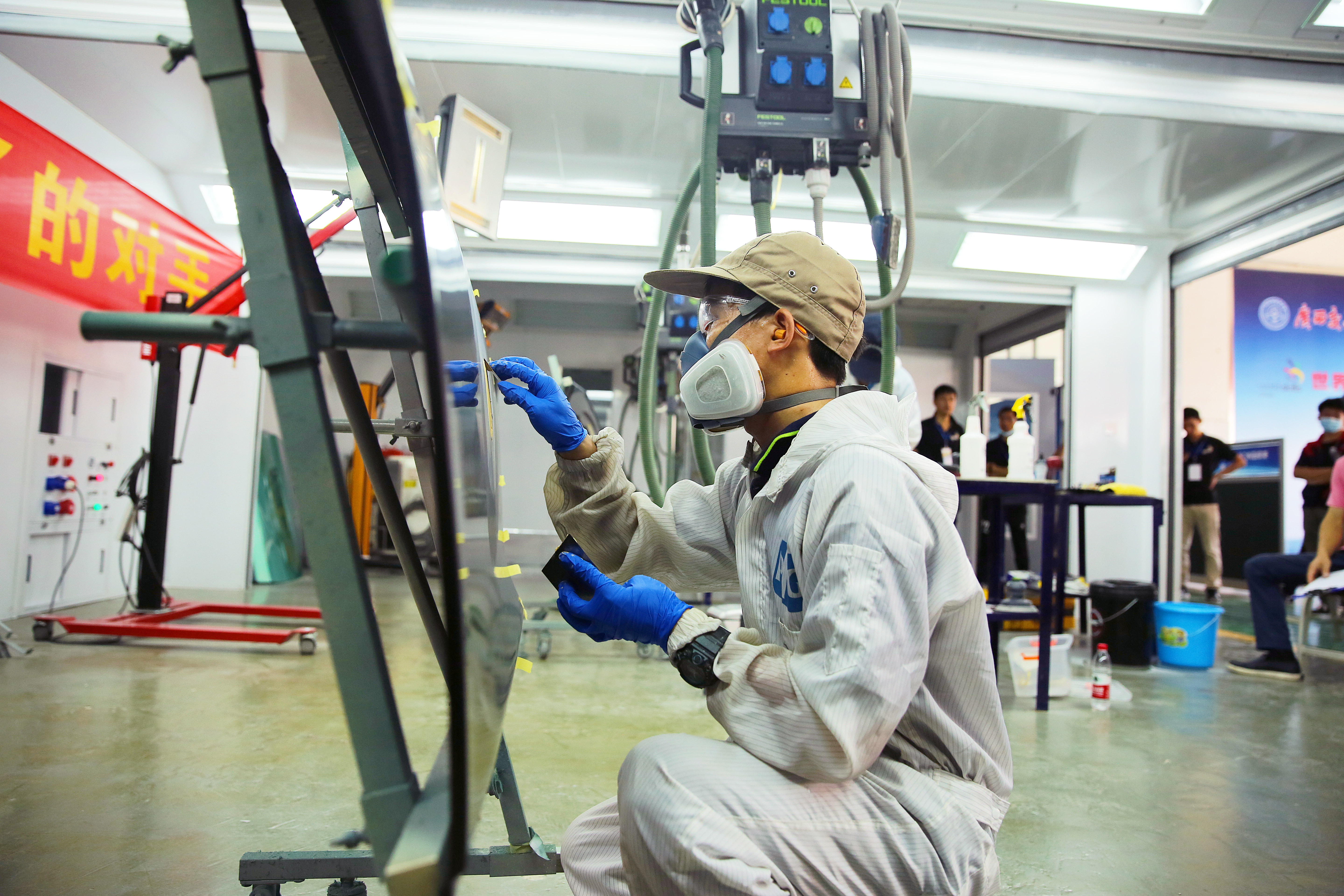 汽車噴漆項目是指(zhǐ)運用合適(shì)的技術和流程對汽車(chē)工件(金屬件及塑料件等)上的損傷進行噴漆修複的競賽項目(mù)。比賽中對選手的技能要求主要包括(kuò):做好噴塗(tú)準備,使(shǐ)用適當產品(pǐn)對待(dài)維修區域進行處理;填補原子灰(huī),並進行(háng)打磨和噴塗底漆;調色;按照給定的顏色要求進行貼護及噴塗以完成雙色或者多色噴塗;完(wán)成拋光操作。