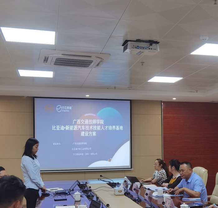5月19日(rì)上(shàng)午,行雲新能(深圳)科技(jì)有限公司總(zǒng)經理吳立新、經理徐小紅、聶建坤以(yǐ)及(jí)廣(guǎng)西桂立寶教育設備有限公司總經理賴育章一行(háng)4人到我(wǒ)院開展新能源汽車、智能聯網汽車校企合作項目調研和(hé)洽談會。 洽談會在綜合樓(lóu)1624會議室舉(jǔ)行,院長劉(liú)芳出席會(huì)議並講話,副院長(zhǎng)關菲明、副院長樊海林以及汽車工程係負責人參加會議。