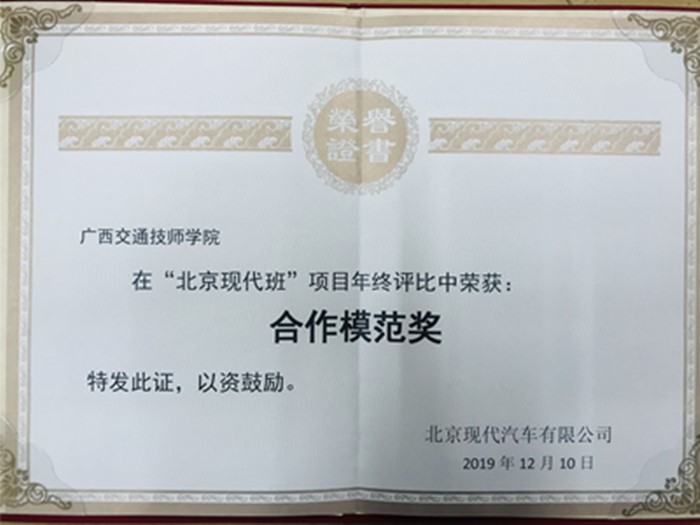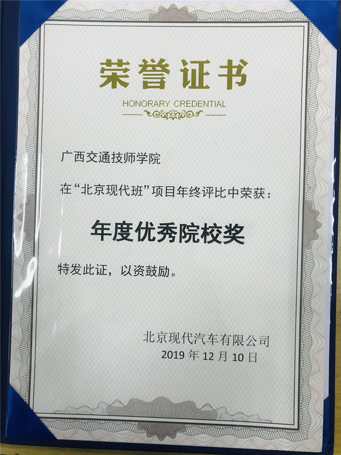 我院獲(huò)得北京現(xiàn)代校企合作項目(mù)“年度優秀院校獎”