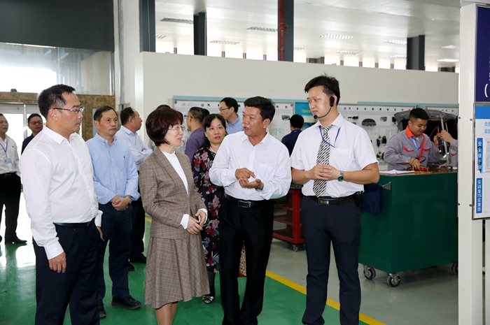 視察期間,王曉君副司長一行先後(hòu)參觀了(le)我院動車實訓基地、機電工程實(shí)訓基地、大師工作(zuò)室、汽車4S實訓基地、中德諾浩培訓基地(dì)、世賽噴塗實(shí)訓中心、新能(néng)源汽車實訓中心、保時捷汽車噴塗(tú)實訓中心等教學實(shí)訓場所。
