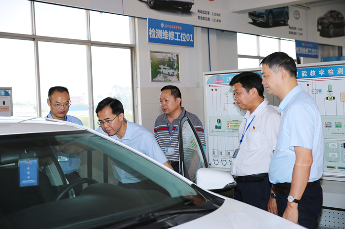 韋勇球副廳長(zhǎng)一行先後參觀了我院(yuàn)動車實訓基地、大師工作室、汽車4S實訓基地、中德諾浩培(péi)訓(xùn)基地、新能源(yuán)汽(qì)車實訓中心、保時捷(jié)汽車噴(pēn)塗(tú)實訓中心、烹(pēng)飪專業實訓(xùn)基地以及幼兒教育實(shí)訓室等教學實訓場所。考察組對我院(yuàn)在實訓基(jī)地建設和校園文化(huà)氛圍營(yíng)造等方麵做出的努力和貢獻表示高度讚揚。