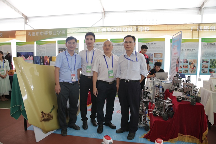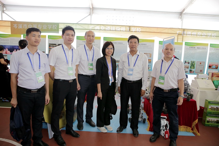 自治區(qū)教育廳職成處處長覃壯才與我院參展教師合影