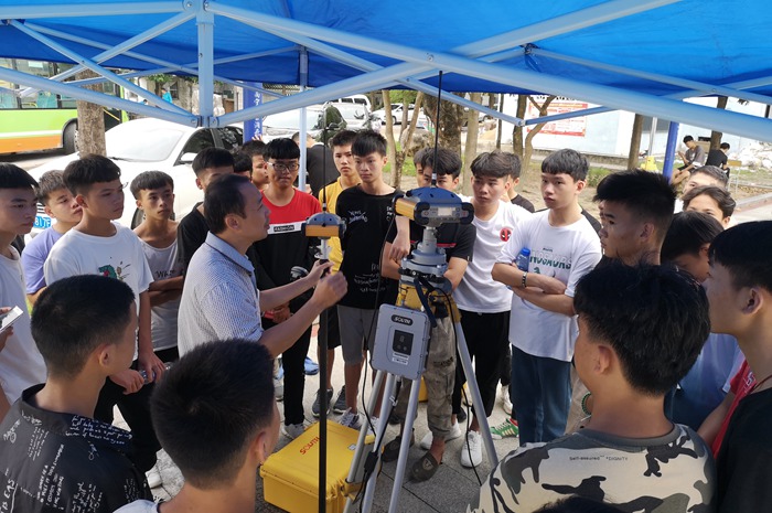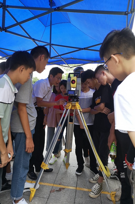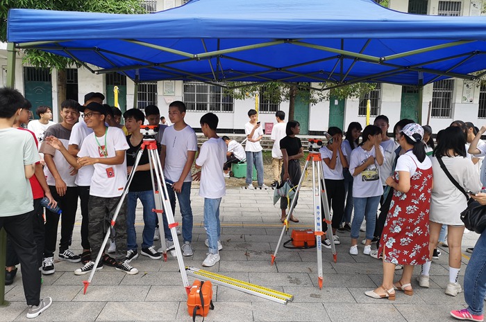 學生參(cān)觀水準儀測量,並由18級學長進行演示