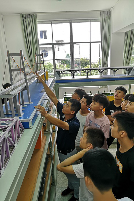 橋梁模型室(shì),劉福海老師現場講解橋梁知識