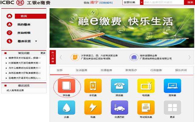方式四、在電腦上登陸工行網站首頁(www.icbc.com.cn)通過工(gōng)銀e繳(jiǎo)費進(jìn)行交費。