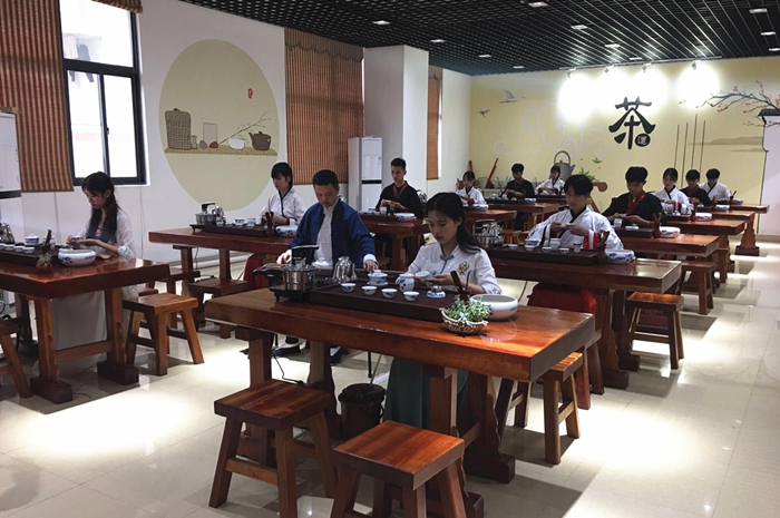 學院教師和學生在進行(háng)茶(chá)藝表演