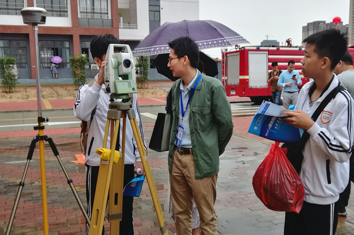 參(cān)加活(huó)動的學生在體驗我院公路工程設備儀器操作