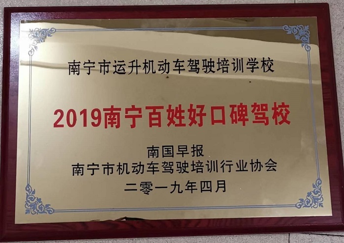 南寧運升(shēng)駕校喜獲“2019南寧百姓好口碑駕校”稱號