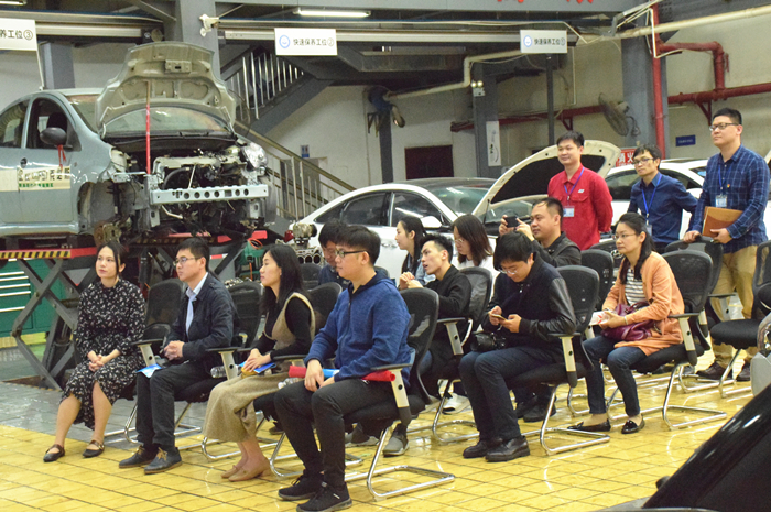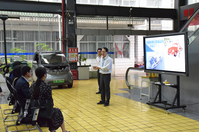 當(dāng)天活動采取了座談交流、參觀(guān)學習、現場(chǎng)教學相結合的形式,內容豐富,受到了參與(yǔ)活動(dòng)人員的歡迎。座談會上,學院團委向參(cān)加活動的人員詳細介紹了學院概況、學院團建工作情(qíng)況和成(chéng)效(xiào),與會人員在會上積極交流探討,氣氛熱烈。參加活動人員還參觀了我院(yuàn)大師工作(zuò)室實訓車間,並現場認真聆聽我院教師講(jiǎng)解汽車構造常(cháng)識、汽車常規檢查以及應急輪胎更換操作。
