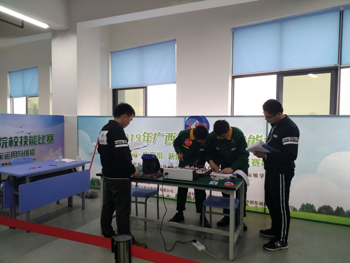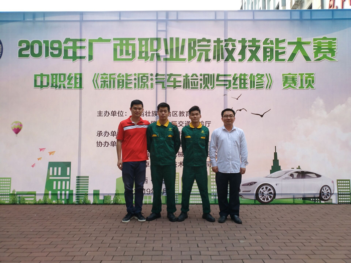 新能源汽車檢測與維修項目於3月(yuè)24日-25日在廣西(xī)交(jiāo)通運輸學校舉行,參加新能源汽車檢測(cè)與維修賽項的(de)共有來自全區的44支代(dài)表隊,我院汽車(chē)工程(chéng)係學生薛華傑、楊周龍參加了本次比賽。