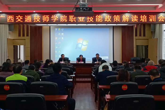 為貫徹落實習近平新時代中國特色社會主義思想,進一步辦好新時代職業教育,完善教(jiāo)育管理方式,創新高技能人才培養模式,2019年3月7日,我院在(zài)信息中(zhōng)心4樓會議室召開了職業技能(néng)政策解(jiě)讀培訓會,會議邀請了自治區人力資源和社會保障廳職(zhí)業能力建設處處長楊春華、主任韋文超進行授課培訓,我院中層以上領導幹部及相關管理人員參加了會議。會議(yì)由院長鍾修仁(rén)主持。