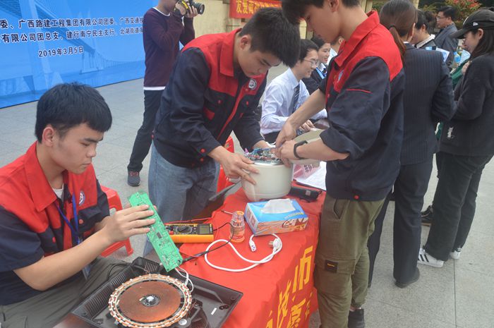 我院作為此次活動的協辦(bàn)單位,負責義務家電(diàn)維修、單車維修等項目。活動現場,聞訊(xùn)趕來的市民陸陸續續從(cóng)家裏(lǐ)拿(ná)來不能正(zhèng)常工作的小家電讓誌願者幫忙“會(huì)診”,電磁爐(lú)、電飯鍋、吹風機等(děng)各種小家電擺滿了服務台。我(wǒ)院的誌願者們認(rèn)真查找故障原因,仔細地對故障家電(diàn)進行維修,大家連續“奮戰”了2個多小時(shí)也顧不上休息。市民們拿到了被維修好的電器後對我院誌願者的技術和服務給(gěi)予(yǔ)了高度稱讚,紛紛豎起了大拇(mǔ)指。
