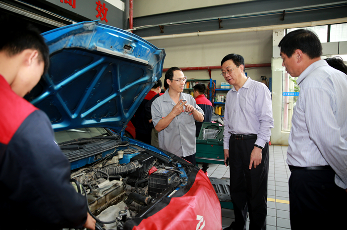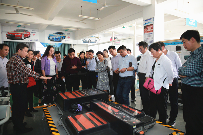 一行人參觀我院新能源汽車實訓設備(bèi)