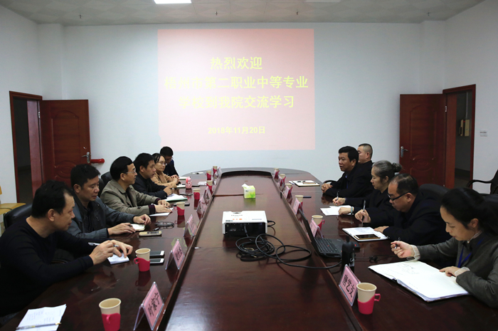 11月20日(rì)下(xià)午,梧州市第二職業中等專業學校校長陳森英等一行9人到我院參觀交流。我院院長鍾修仁率相關部門負責(zé)人(rén)熱情接待來(lái)賓並進行了深入交流。