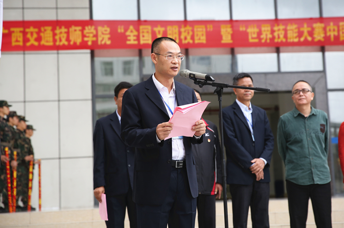 10月(yuè)15日下午,我院在學院綜(zōng)合實訓樓舉行“全國文明校園”暨“世界技能大賽中國集訓基(jī)地”揭牌儀式。自治區交通(tōng)運輸廳黨組書記、廳長陳鴻起,自治區(qū)直屬機關工作委(wěi)員(yuán)會副(fù)書記蘇德明,自治區人力資源社會保障廳黨組(zǔ)副書記、副廳長、巡視員潘誌金,自治區直屬機(jī)關文明(míng)辦主任顏東偉,自治區人力資源和社會保障廳職業(yè)能力建設處處長楊春華,自治區交通運輸廳科教處副處(chù)長張(zhāng)斯悅,自治區道路運輸管理局書記羅華以(yǐ)及91.com技師學院領導班子等出席儀式。我院院長鍾修仁主持揭牌儀式。
