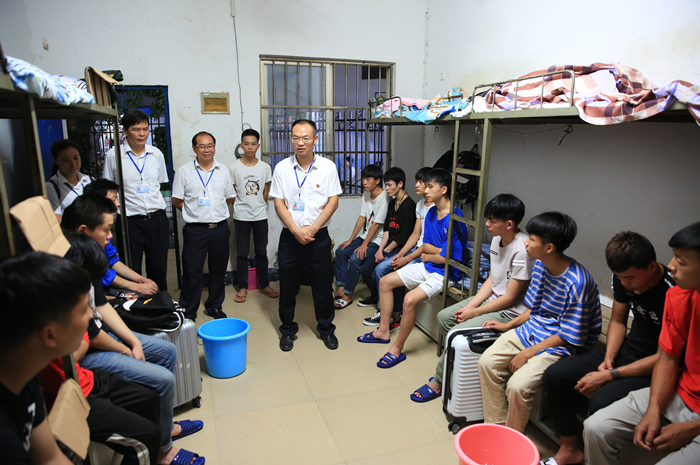 晚上8點,學院院長鍾修仁,黨(dǎng)委書記古雅明,副院長(zhǎng)陸天雲、關菲明、蔣斌(bīn),院長助理樊海林等學院領導及全體中層領導分成4個小組,到新生宿舍看望報(bào)到(dào)入學的新生,詳細了解新生到校後的感受和生活情況,對新生們提出了殷切希望,並囑咐同學們盡快適應學校生活,珍(zhēn)惜在學校(xiào)的學習時光,努力學習、提高(gāo)專(zhuān)業技能,成為(wéi)社會有用之才。