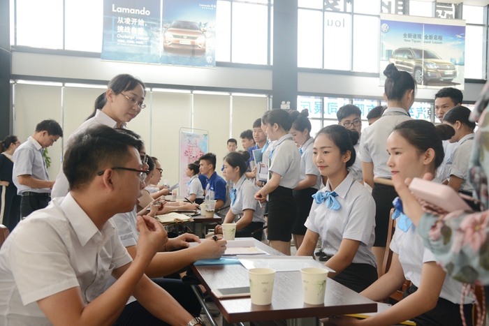 6月6日,我院2018年北京現代班校園專場招聘會在學院汽車4S展廳隆重展開,13家企業代表應邀參加了此次招聘會。學院2017級(jí)北京現代機修班和服務營銷班共38名畢(bì)業生前來應聘,並且全都應(yīng)聘成功,順利簽訂實習崗位。