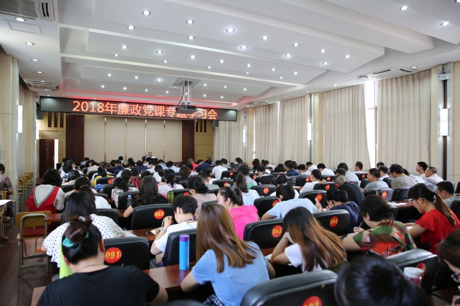 為深入學習貫徹(chè)黨的十九大和全國“兩會”精神,推動學院黨風廉政建設,2018年5月16日下午(wǔ),我院(yuàn)在信息中心四樓多(duō)功能會議廳召開廉政黨課專題學習會議,黨委書記(jì)古雅明同誌給學院全體在職黨員、各部門中層正、副職(zhí)幹部上廉政教育黨課。