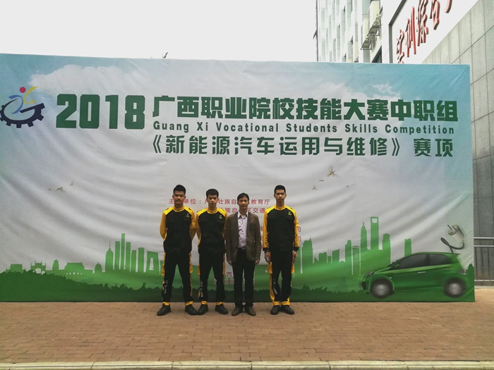 新能源汽車運用與維修項目於324-25日在91.com運輸學(xué)校舉行,參加新能源汽(qì)車(chē)運用與維修項目的共有來自廣西各個縣市的32支代(dài)表隊,我院汽(qì)車工程係學生劉瑞利、沙德新、彭荘慶參加了本次比賽。