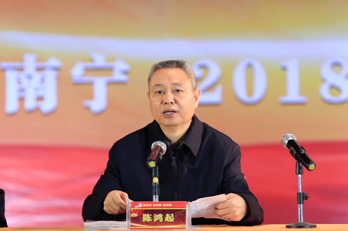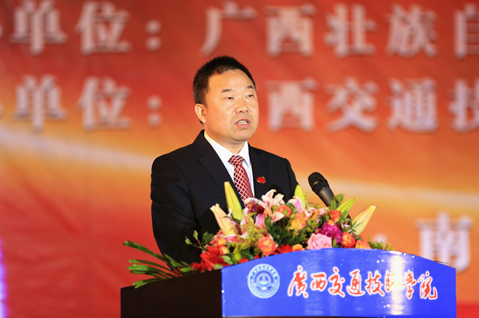 自治區交通運輸廳黨組書記、廳長陳鴻起在報告會上致辭