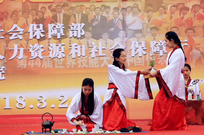 參加活(huó)動的領導、專家與第44屆世(shì)界技能(néng)大賽(sài)獲獎選手合影