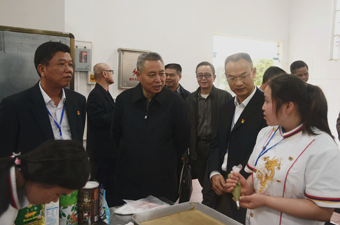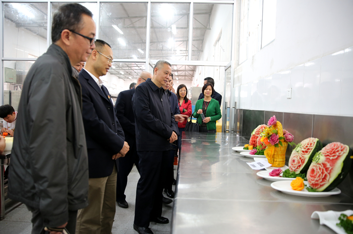 陳鴻起廳長一(yī)行參(cān)觀我院烹飪專業學生(shēng)雕花作品