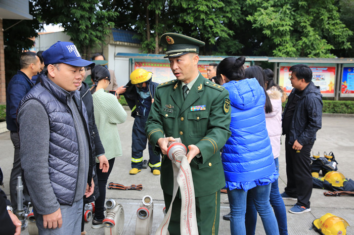 到達軍營後,我院師(shī)生在基地領導的陪同下參觀了幹淨、整潔的警(jǐng)勤(qín)中隊宿(xiǔ)舍,整齊(qí)的內務讓師生們肅然起敬。隨後,我院護校隊(duì)的(de)學生在(zài)基地官兵的指導下進行了一次嚴格的訓練,在莊嚴的氣氛中感受部隊(duì)的(de)嚴明紀律。我(wǒ)院教師還認真觀(guān)看了基地(dì)官兵的隊列訓練及消防技(jì)能訓(xùn)練等,並(bìng)現場動手實踐水帶連(lián)接,了解火災等(děng)自救知識,官兵們(men)快速、嫻熟的消防技能也贏得了(le)教師們的陣陣(zhèn)掌聲。