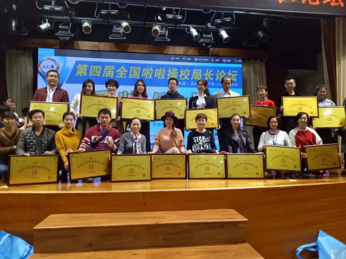 院長助理(lǐ)鄭超文(wén)(後排左三)與劉飛英老師(後排(pái)左二)在“全國啦啦操一星級俱樂部”授牌儀式上