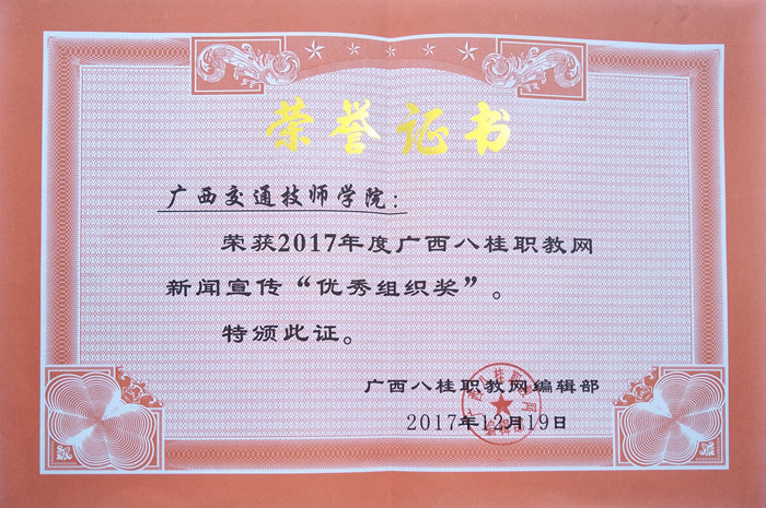 我院榮獲2017年度廣西八桂職教網新聞宣傳“優秀組織獎”