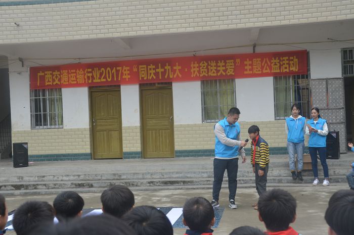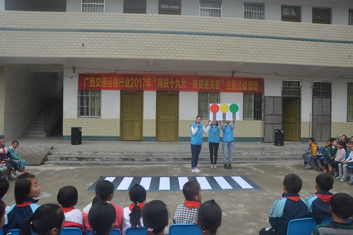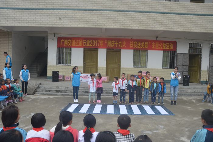 為(wéi)深入學習貫徹習近平(píng)總書記(jì)係列重要講話(huà)精神,讓廣大青年在社會實踐中受教育、長才(cái)幹、做貢獻,11月9日(rì)至10日,我院由孫廣福(fú)、李宣葙、陳楊、潘鑫、馬舒嫻和韋林英六名老師組成的誌願者服務隊奔赴自治區交(jiāo)通運輸廳扶貧工作聯係點所在地(dì)羅城縣東門鎮德音村小學(xué)開(kāi)展2017年 “三下鄉”社會實踐活動。