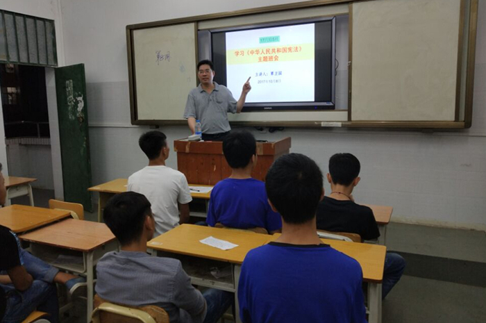 我院大力營造學法(fǎ)氛圍,使憲法人人知曉、深入人心,學院活動前期做了大量準備工作:一是召開專(zhuān)門(mén)會議,安(ān)排部署(shǔ)普法工作,明確普(pǔ)法要求和目的;二是利用微信公眾號、學院(yuàn)官方網站等平台宣傳憲法知識;三是學院各黨支部(bù)組織黨員組集中(zhōng)學習《憲(xiàn)法知識》,並要求認真總結學習憲(xiàn)法心得體會;四是在全校各班開展以“學習憲(xiàn)法”為主題的主題(tí)班會,舉行“法製知識大講堂”講座,促進學生們深入學習憲法內容,了解憲法章程。
