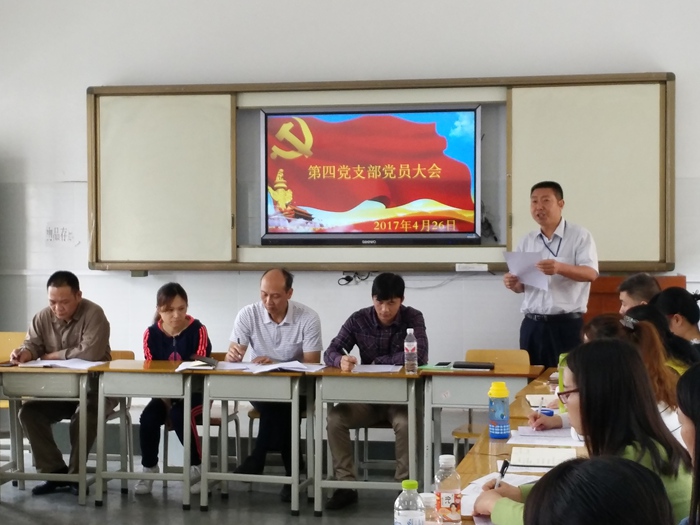 4月26日我院第四黨支部在(zài)求學樓201召開(kāi)新一屆(jiè)黨支部委員選舉會議。黨支部召集人樊海林主持會議,校黨(dǎng)委委員關菲明與39位黨員同誌一同參(cān)加(jiā)了會議。