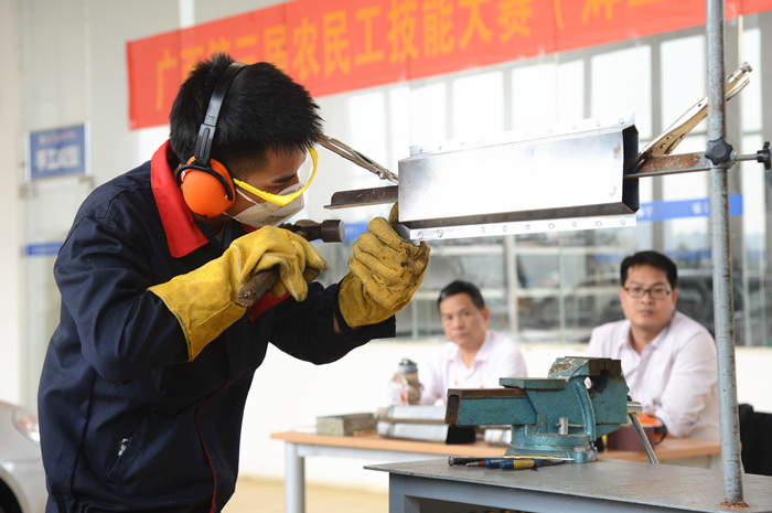 參加選拔(bá)的(de)7名學生經過學院2016年校園技能節的(de)層層選拔,從129參賽選手(shǒu)中脫穎而出,然而在此次“7進4”選拔(bá)賽中,標準更高、要求更嚴,更嚴地(dì)考驗了7名參賽選(xuǎn)手的專業技術和心理(lǐ)素質。經(jīng)過緊(jǐn)張激烈(liè)的“板件更換”和“門板修複(fù)”兩大環(huán)節,最終2014級鈑高3班的秦(qín)家旺、秦誌海、黃佳金(jīn)以及2015鈑(bǎn)中2班黃良基等4名學生入選。他們將在指導教(jiāo)師的安排下,投入到新一輪的緊張訓練(liàn)當中(zhōng),力求以最佳的精神狀態和持久的備戰熱情,迎(yíng)接2017年廣西(xī)中職(zhí)技能大賽汽車(chē)車身修複(鈑(bǎn)金)技術項目比(bǐ)賽。