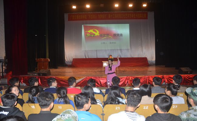 11月9日晚(wǎn),我(wǒ)院三百六十名入團積極分子齊聚禮堂,聆聽由學院第三(sān)黨支部書記黃英姑同(tóng)誌帶來的一場以(yǐ)“學(xué)黨史(shǐ)、知黨恩、跟黨走” 為主題(tí)的專(zhuān)題講座。