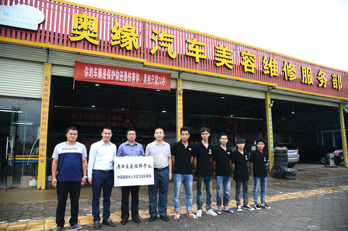 奧緣汽車美(měi)容(róng)維修服務部成立於2013年(nián),位(wèi)於南寧市仙葫大道彩虹(hóng)路2號。總經理李(lǐ)炳宣曾是我院2007級汽車檢測高(gāo)級(jí)一班的學生,談及與母校攜手合作共建實習基地時,他(tā)表示十分(fèn)感激與自豪,他堅信我院學生的專業技能水平和綜合(hé)業務素質,並承諾將通過“師傅一帶一”模式,確保每一個學生都能在實習過程有(yǒu)所收獲,為將來社會就業奠定紮實基礎。